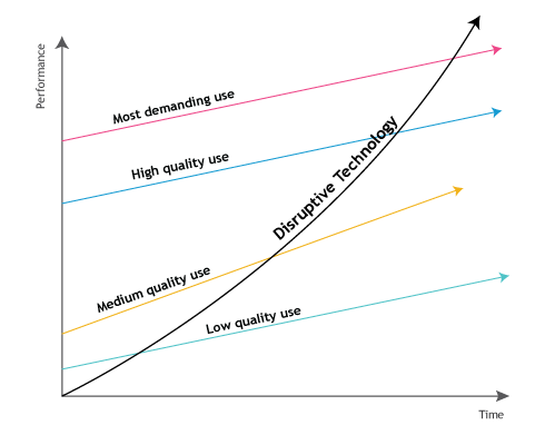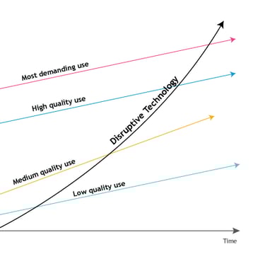 More recently, in the 90s, Clayton Christensen's theory of disruptive innovation exposed how unconventional offerings, normally leveraging new technologies, can disrupt established markets. These innovations often target overlooked customer segments, gradually improving their performance and offerings until they can compete with established players (and frequently win).